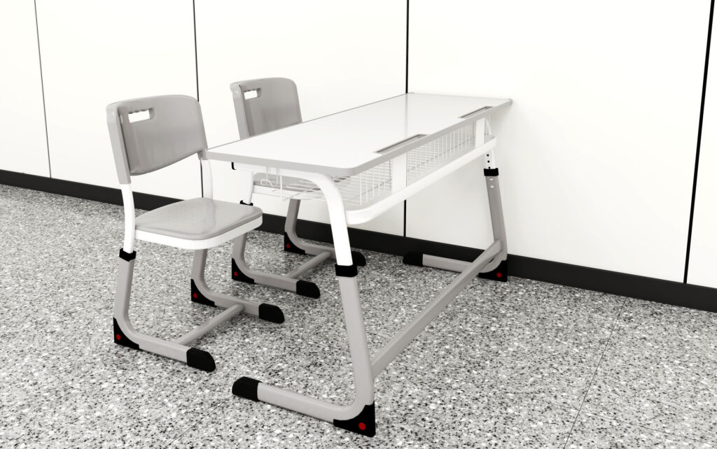 Ergonomic, durable school desks and chairs with steel frames and smooth surfaces. Ideal for modern classrooms, boosting comfort, focus, and collaboration.