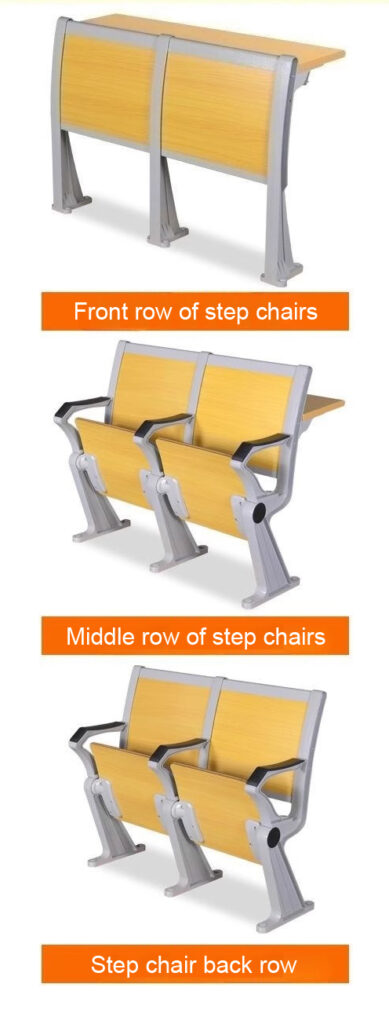 Fixed lecture hall chairs with foldable desks, strong steel structure, comfortable seats, and modern design. Perfect for universities needing reliable, space-saving, and stylish seating solutions.